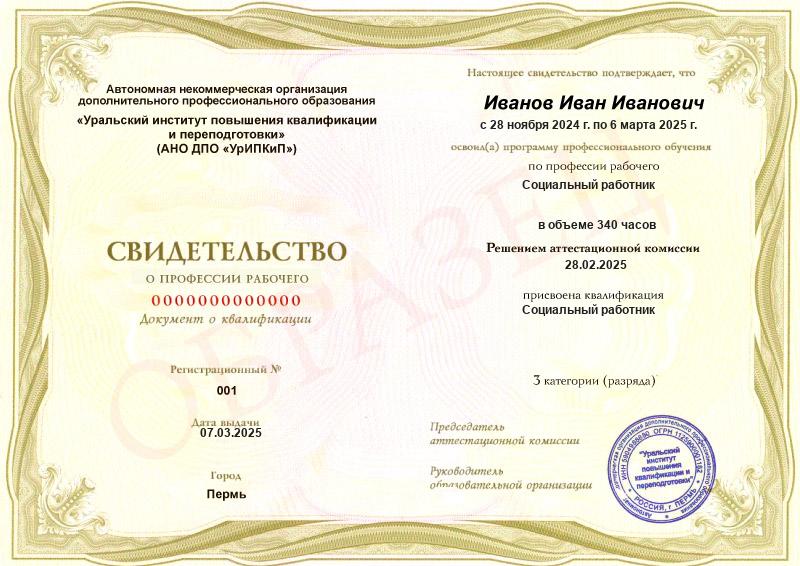 • Квалификация: Социальный работник