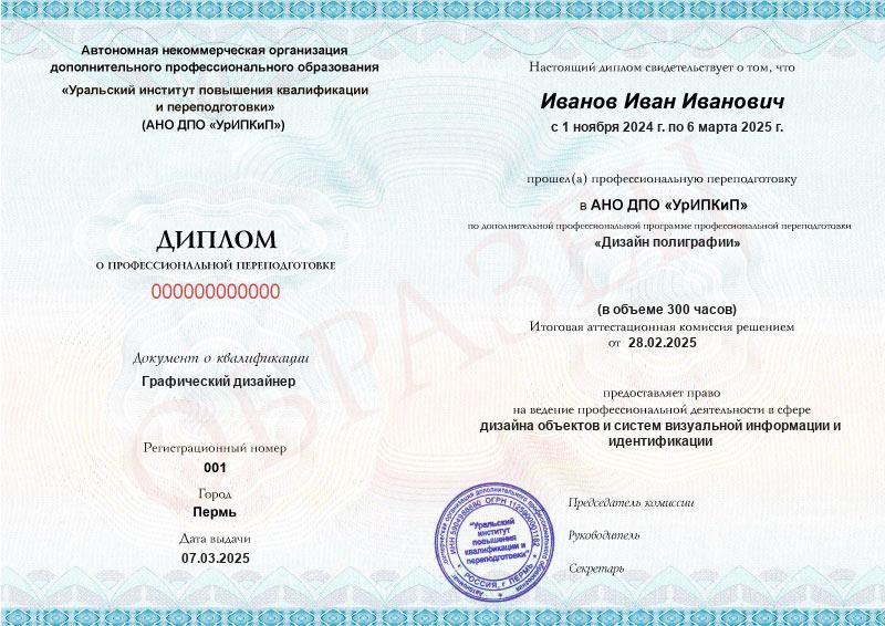 - Образец диплома о профессиональной переподготовке.